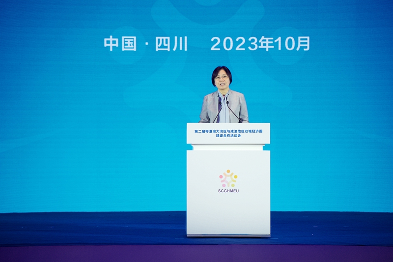 On October 27, the second Cooperation Fair for Construction of the Guangdong-Hong Kong-Macao Greater Bay Area and the Chengdu-Chongqing Economic Circle was held in Chengdu. The conference thoroughly implemented the important instructions of Chinese President Xi Jinping on promoting the organic integration and coordinated development of the construction of the Guangdong-Hong Kong-Macao Greater Bay Area and the Chengdu-Chongqing Economic Circle. Wang Hongyan, vice chairman of All-China Federation of Industry and Commerce, Lu Hong, a member of the Standing Committee and head of the United Front Work Department of the Communist Party of China (CPC) Chongqing Municipal Committee, and Zhao Junmin, a member of the Standing Committee and head of the United Front Work Department of the CPC Sichuan Provincial Committee, attended the cooperation fair and delivered speeches. John Lee Ka-chiu, chief executive of the Hong Kong Special Administrative Region, and Lei Wai Nong, secretary for Economy and Finance of the Macao Special Administrative Region, made speeches via video link.